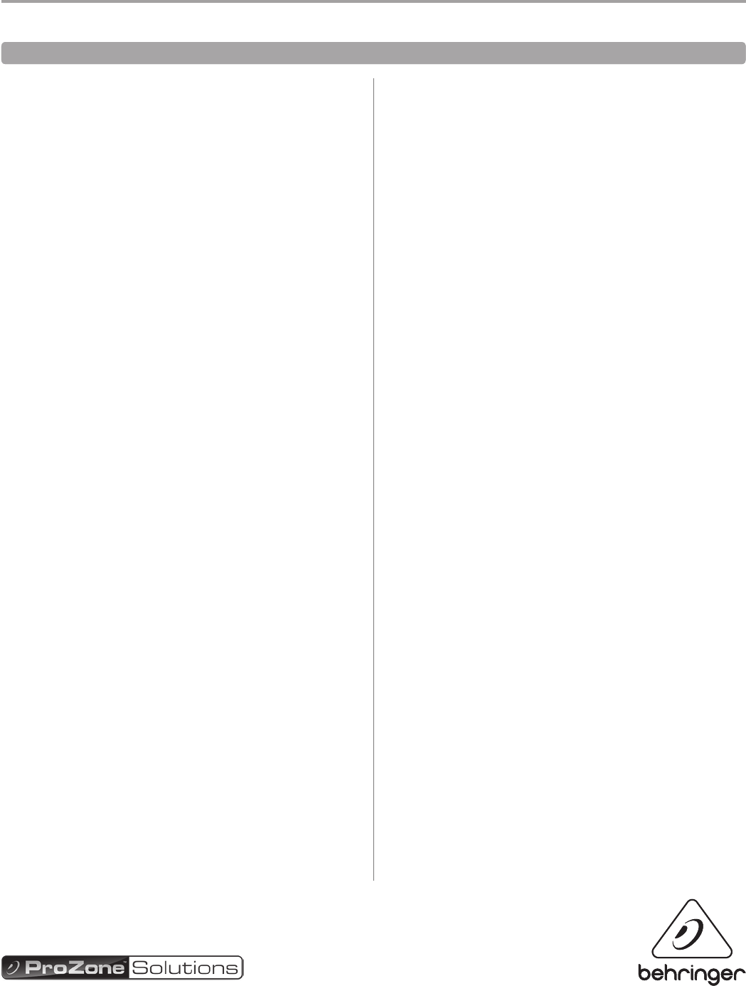 Copyright © 2012 MUSIC Group IP Ltd. All rights reserved. MIDAS, KLARK TEKNIK, BEHRINGER and BUGERA are part of the MUSIC Group (music-group.com). The information contained herein is correct at the time of printing. Technical specifications and