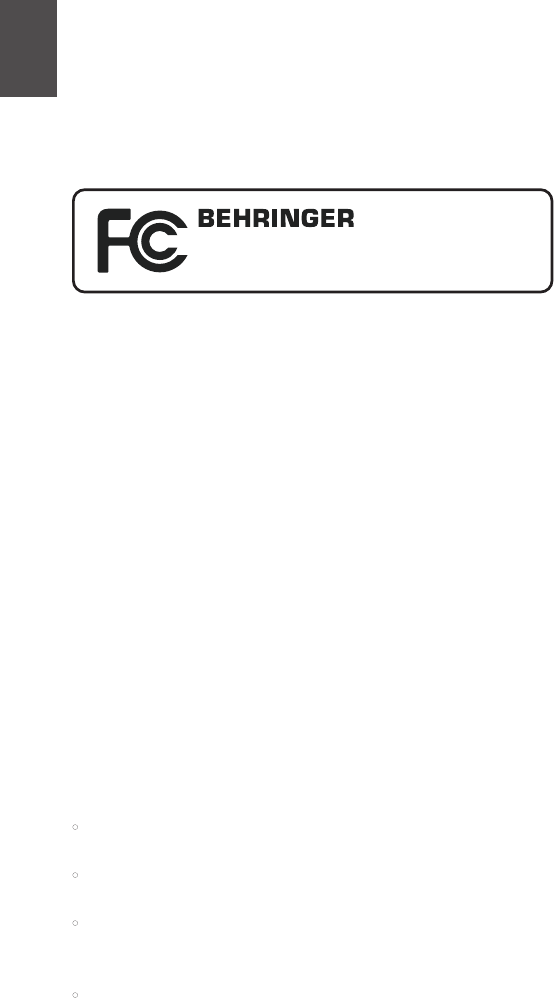 BEHRINGER accepts no liability for any loss which may be suff ered by any