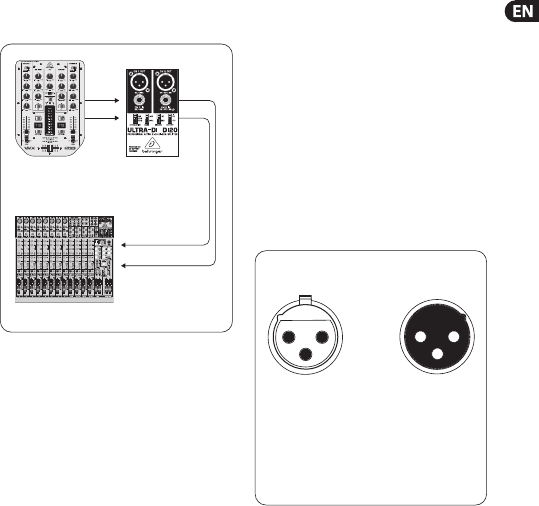Fig. 3.2: DJ-mixer ➠ DI-box ➠ mixing console