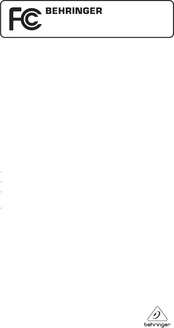 http://behringer.com and read the terms and conditions of our warranty carefully.