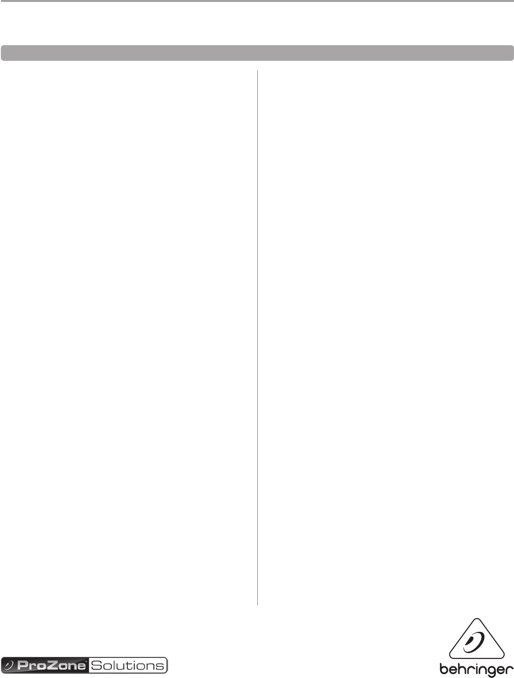 All rights reserved. BEHRINGER, MIDAS and KLARK TEKNIK are part of the MUSIC Group (music-group.com). The information contained herein is correct at the time of printing. Technical specifications and appearance are subject to change without notice.