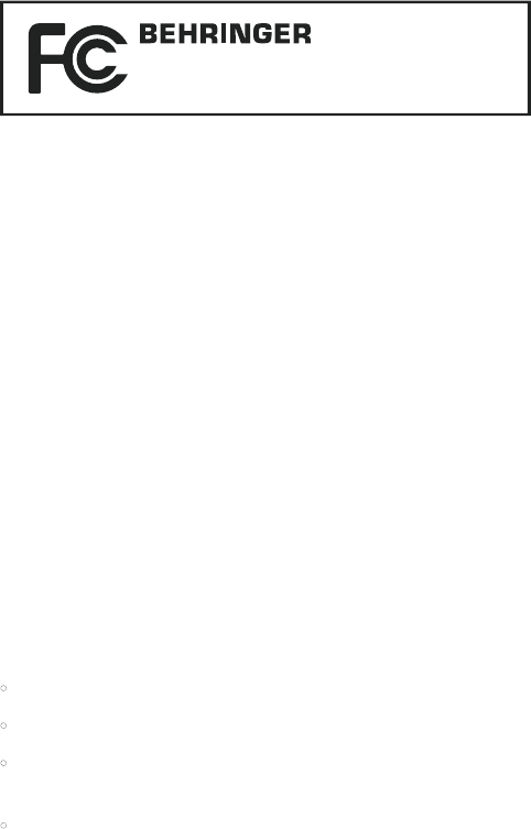 veri cation and BEHRINGER will not repair or replace any product purchased through