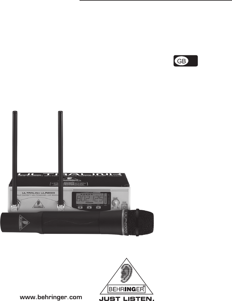 Behringer ULM2000 Hand held microphone User Manual DATA MANFULL ULM2000 ENG Rev A pmd