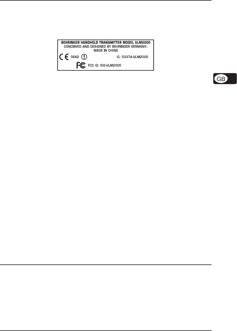 Changes or modifications made to this equipment not expressly approved by BEHRINGER Spezielle