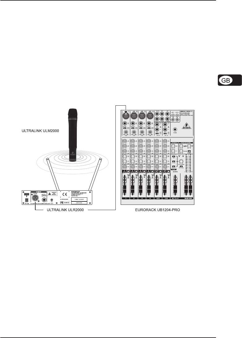 Fig. 6.1 shows how easy it is to use the ULM2000. Simply connect the receiver ULR2000 to your mixing