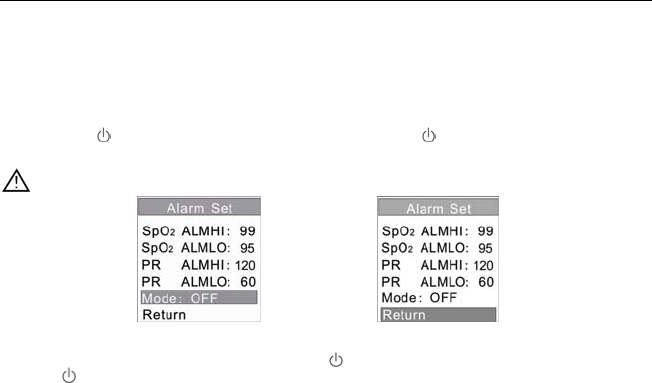 ● Although the pulse oximeter has alarms, it is not suggested for long time continuous monitoring.