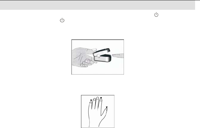 ¾ Moisten a soft cloth with the alcohol and clean the finger probe, before and after each test.