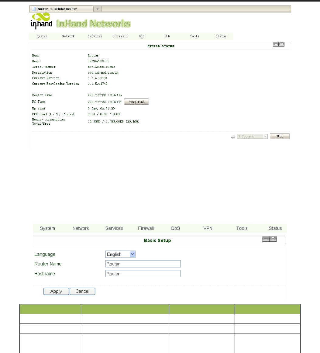 This page shows the status of system, including Name, Model Type, Current Version and etc.