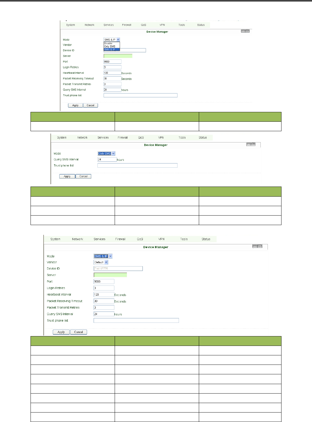 2. SMS control (reboot/show status) at “Service”Æ”SMS”;