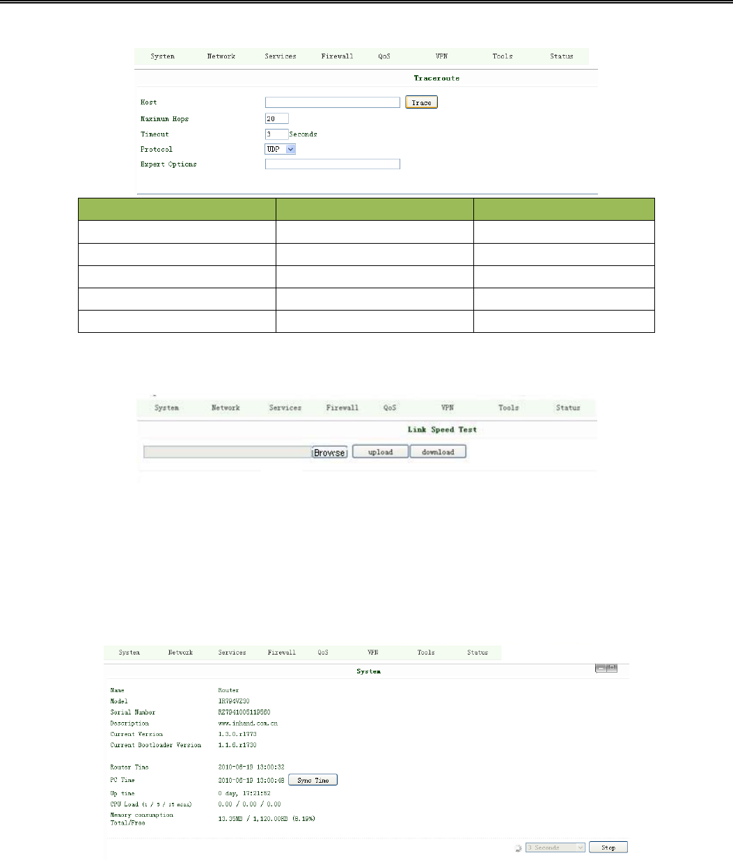Tools contain PING Detection, Route Trace, Link Speed Test and etc.