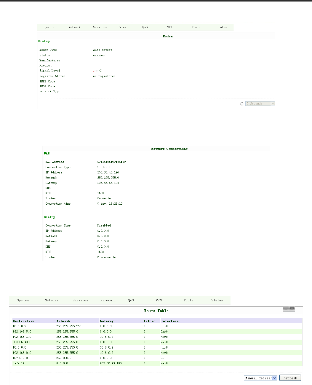 This page shows the status of Modem, including the signal level.