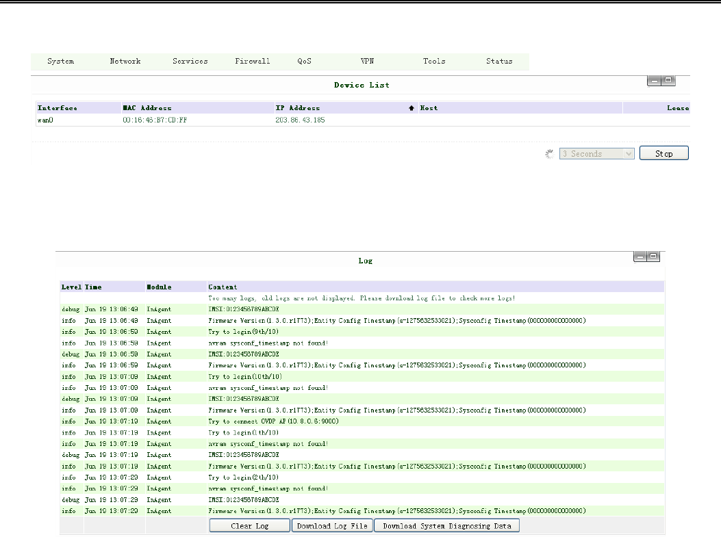 This page shows the log of system, including download log file.