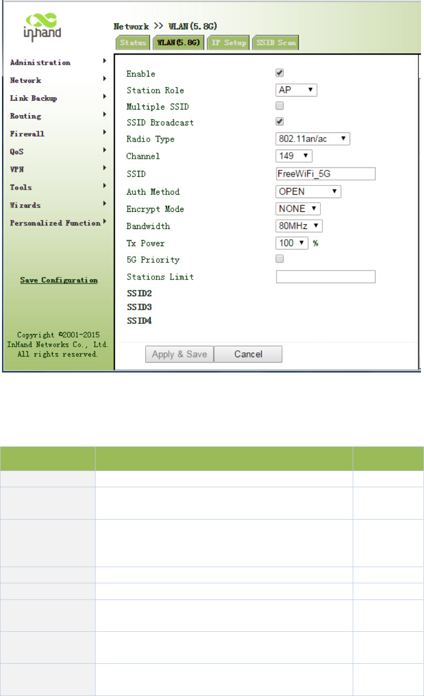 3.3.3WLANInterface(5.8G)...........................................................................................54