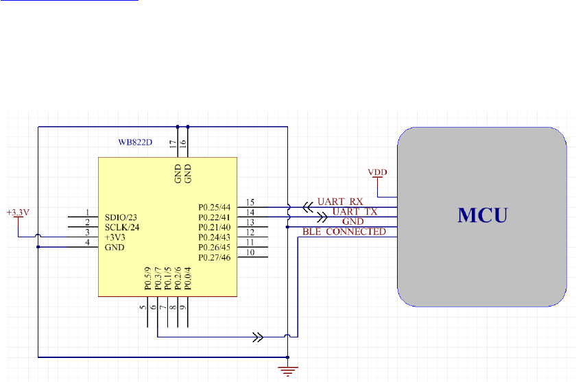 Connecting WB822D Module to MCU (on the main board) via UART Interface as below: