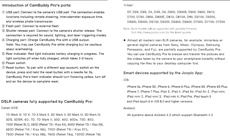 Beijing Joobot Technologies Inc. CamBuddy Pro Users Manual