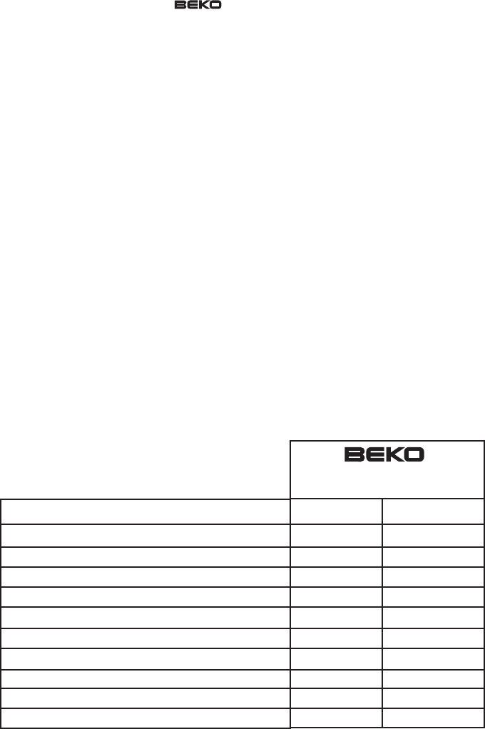 • Beko disclaims any liability for incidental or consequential damages.