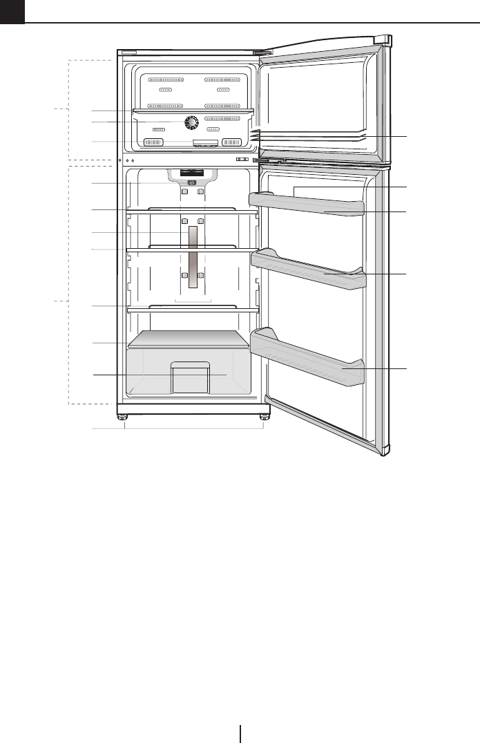 • Food packages may prevent the door’s closing. Reposition the packages that are