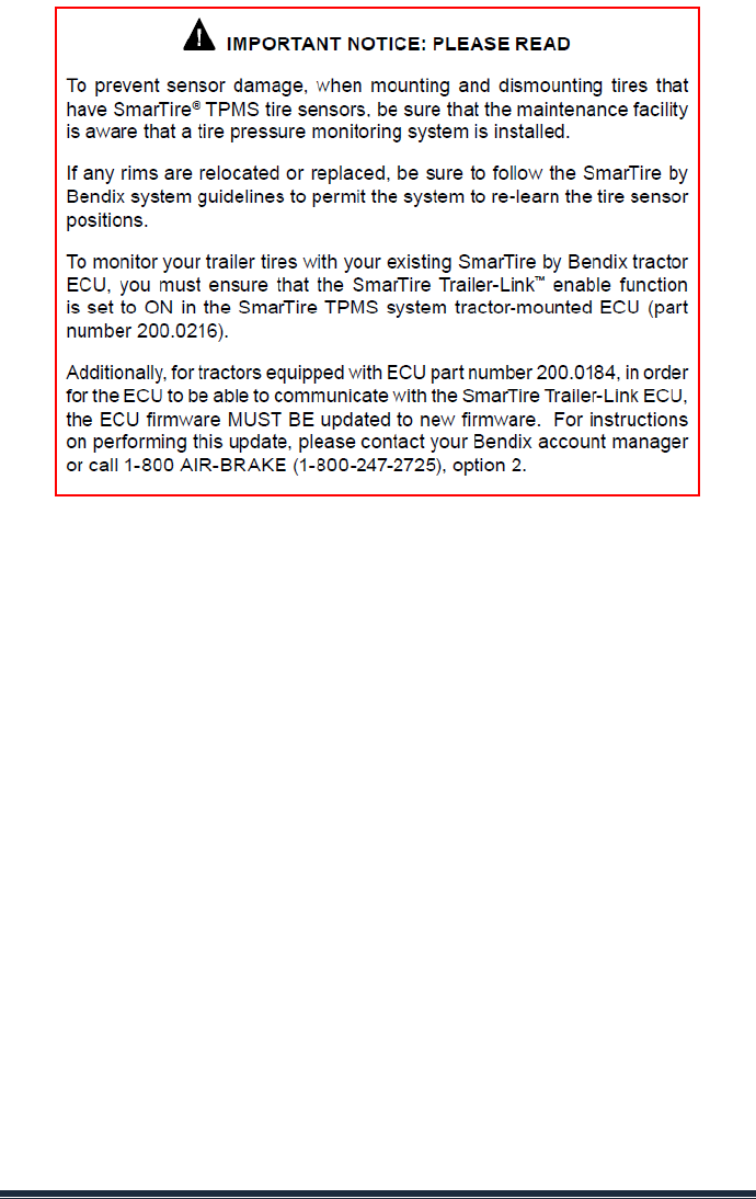 Bendix Commercial Vehicle Systems RXK123716 433.92 MHZ TRANSCEIVER or SmarTire TPMS 2.0 User Manual SmarTire Next GEN ECU Operator Manual