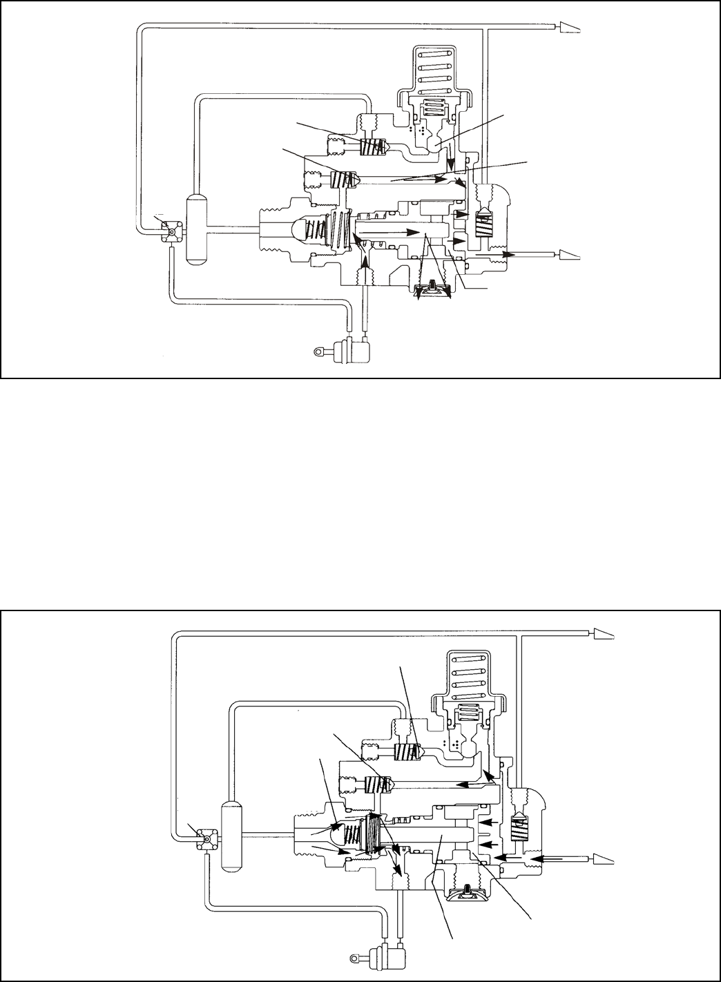 Air pressure acting on the control piston and flowing through