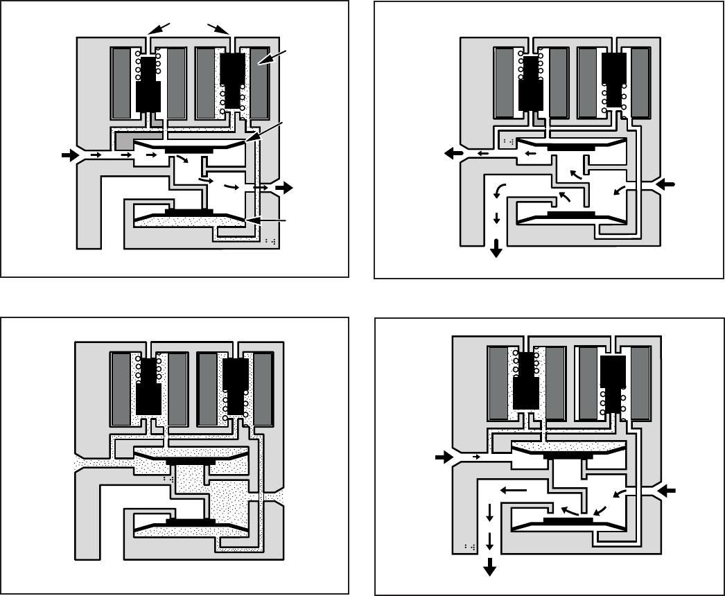 Cuando se inactiva, las válvulas moduladoras de presión le dan paso directo