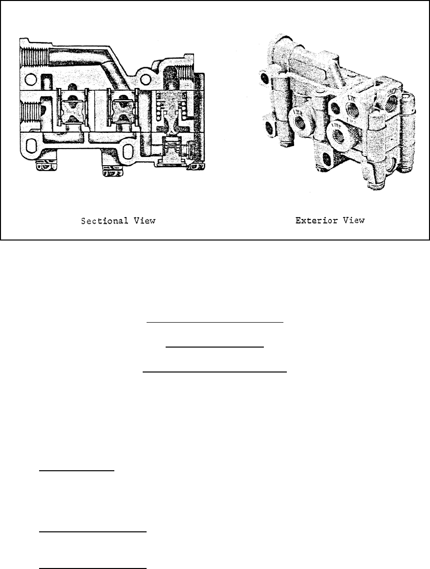The manifold houses three valves that serve the trailer braking system. The valves are: