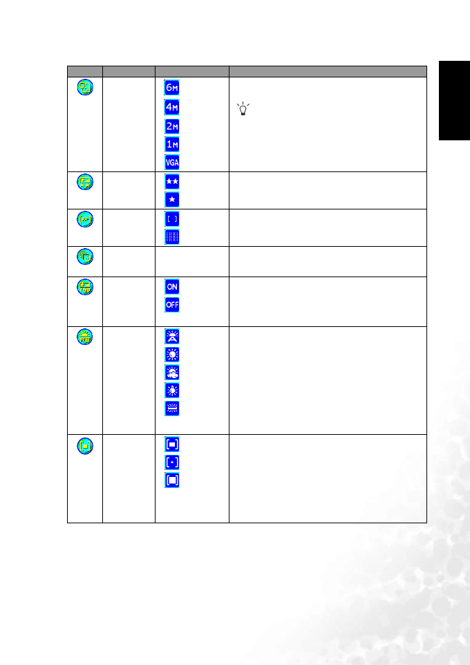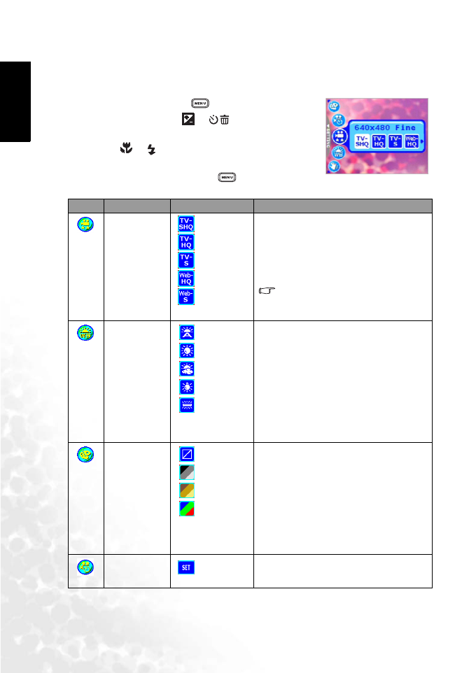 White Balance Auto/Sunny/Cloudy/Sunset/Tungsten/Fluorescent