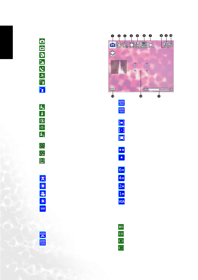 Auto/Manual/Portrait/Landscape/Night/Sport/Backlight/Night