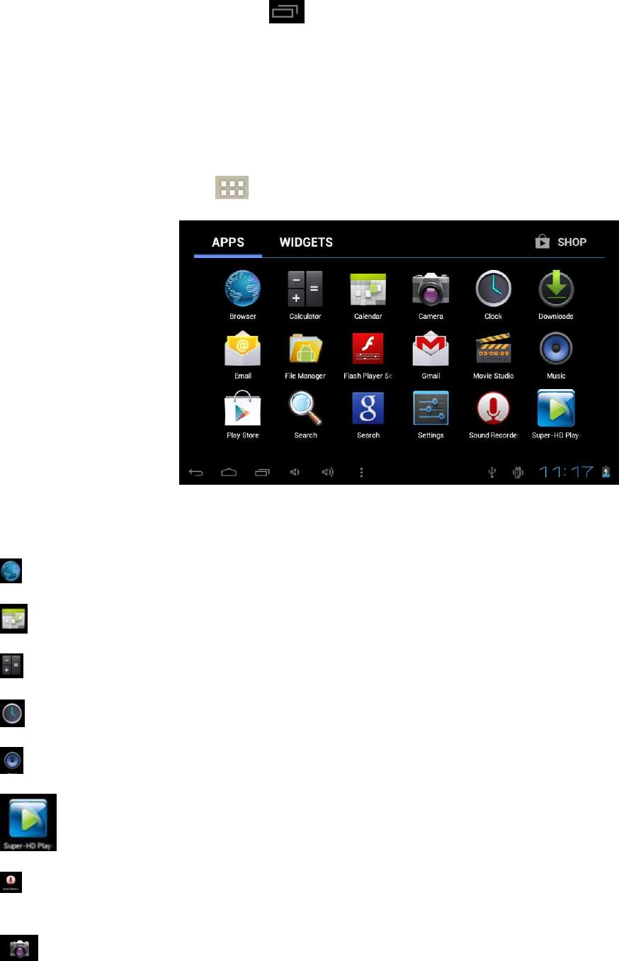 Touch main interface shortcut, select “Browser" to enter browser interface, touch “Menu" button, it will pop up