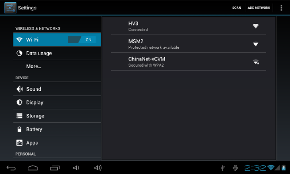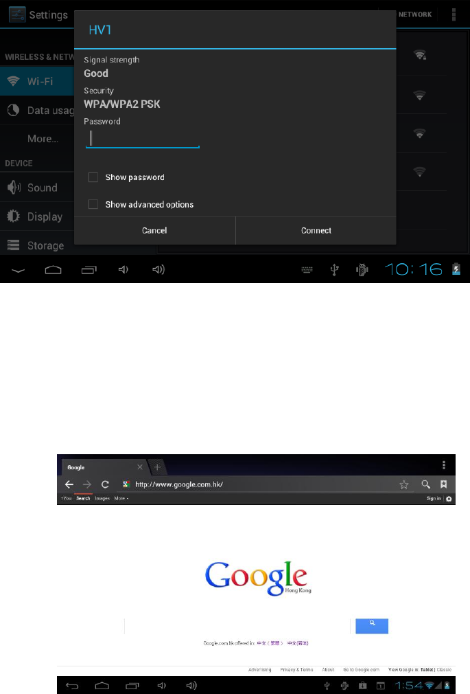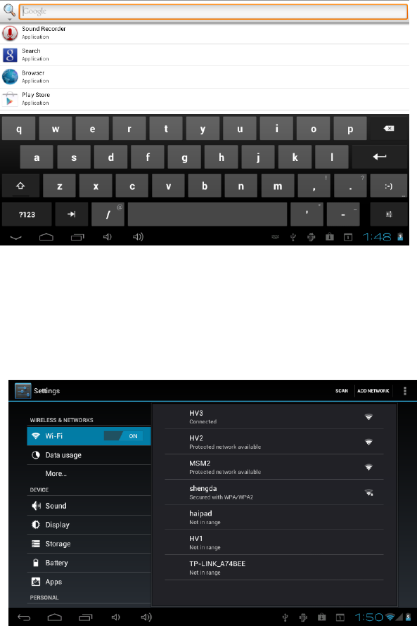 After WI-FI open, it will automatically search wireless router network and display it in a list, touch on the wireless