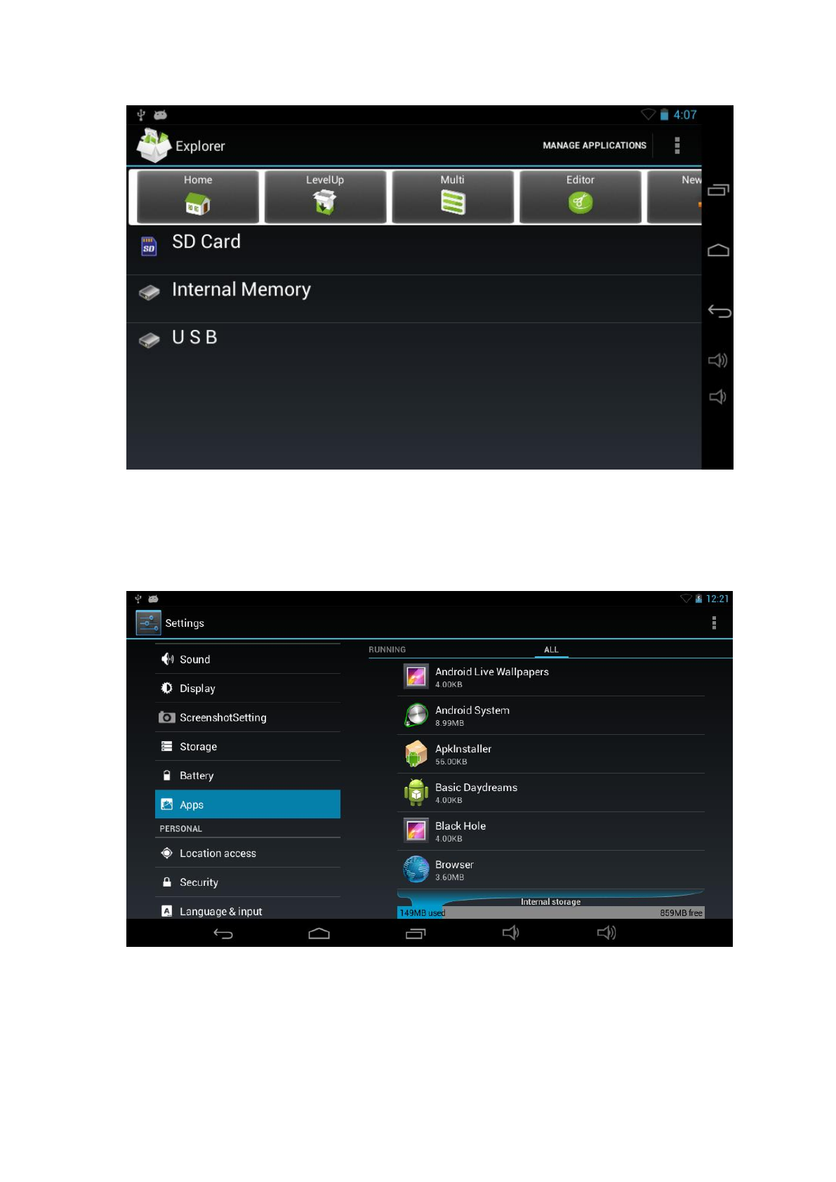 b. Tap or and locate the folder in which the .apk application files were saved.