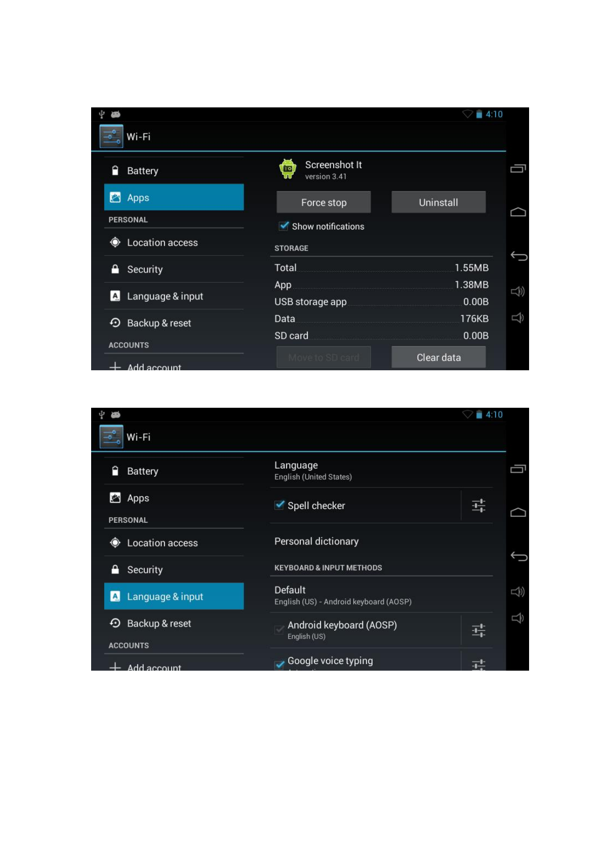 4.3 Display: Brightness, wallpaper, auto-rotate screen, sleep, front size,