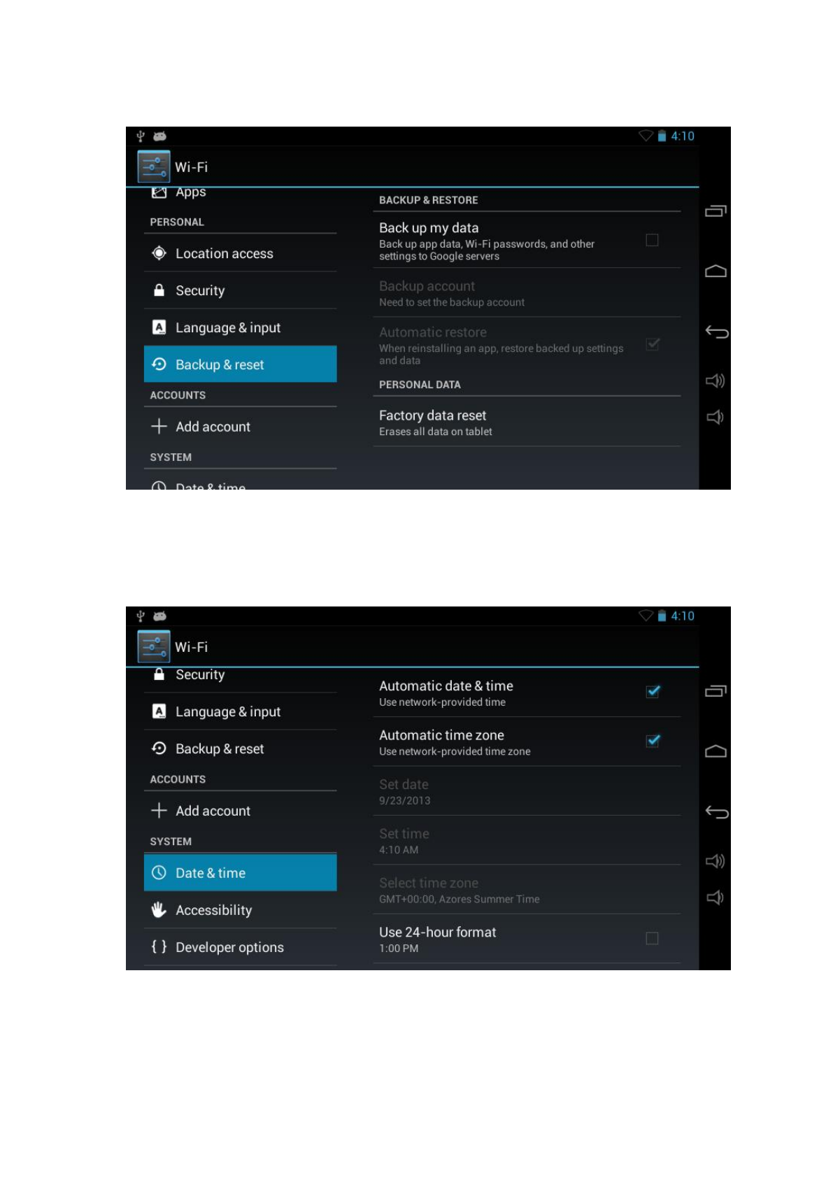 Backup &RESTORE: Back up my data, back up app data, Wi-Fi passwords,