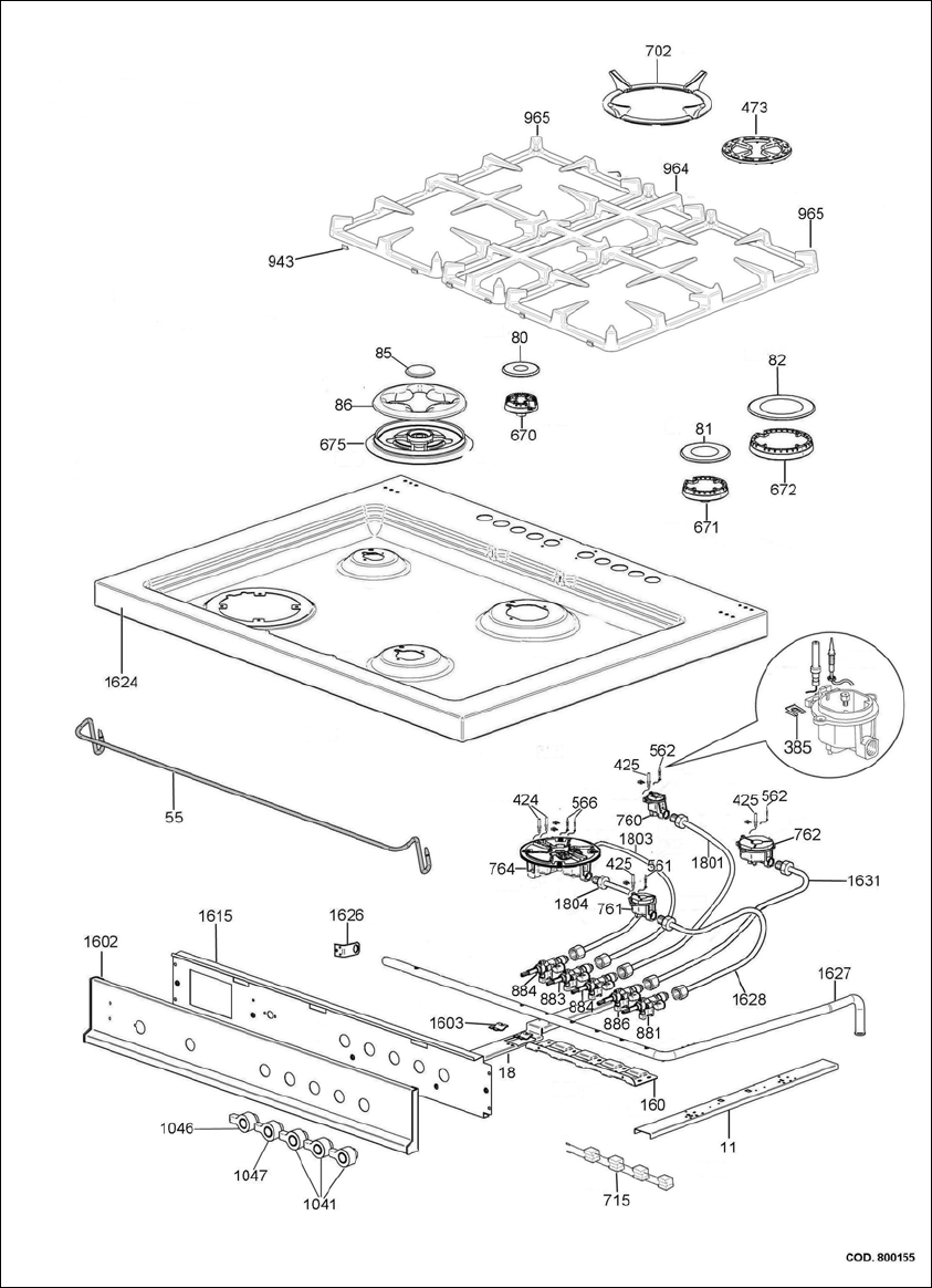 1801 501758 TUBE FOR LEFT BACK BURNER 11111
