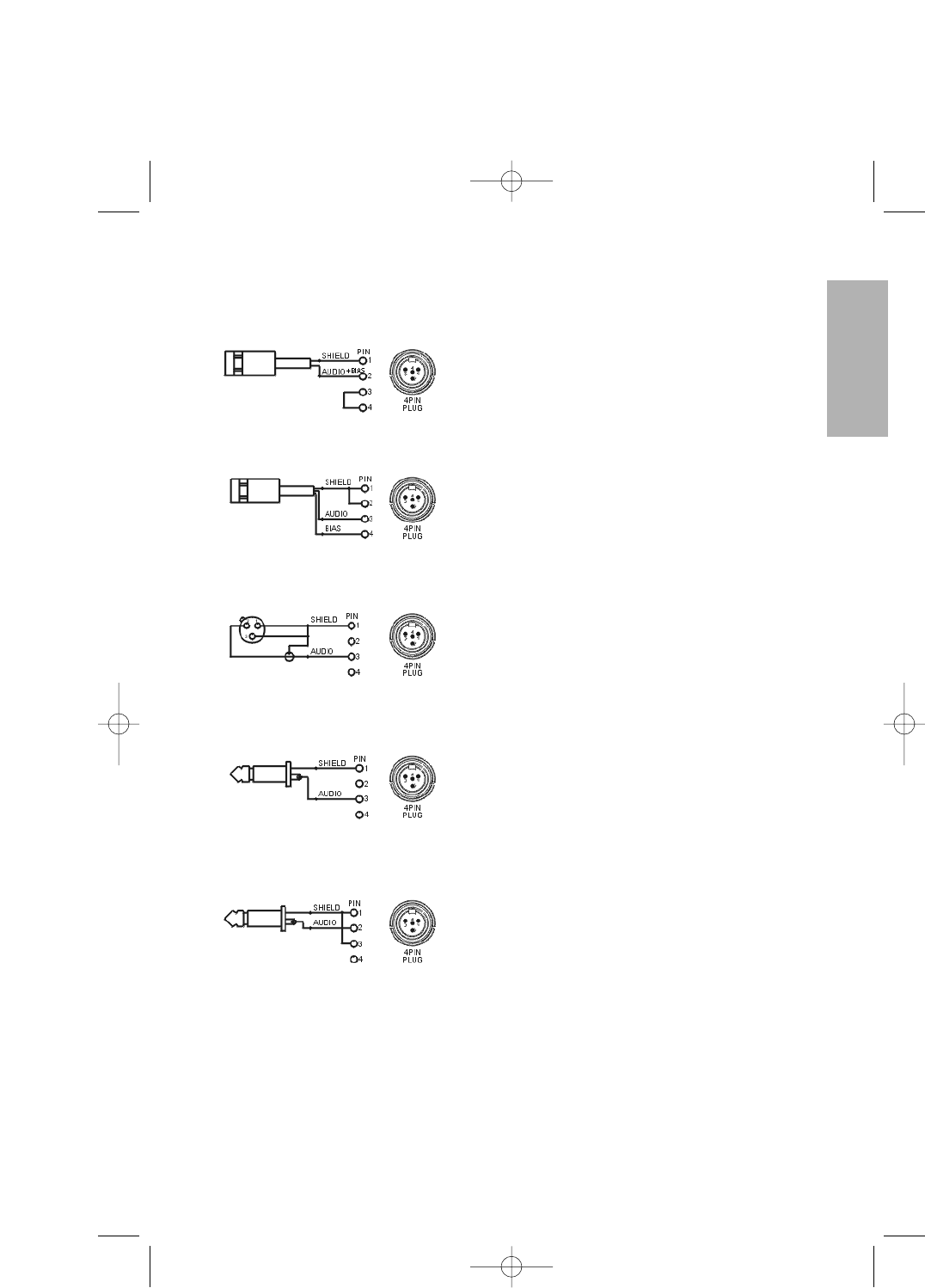 Prise Jack de connexion à 4 pôles . . . broche 1 = masse, broche 2 = IN1, broche 3 = IN2,