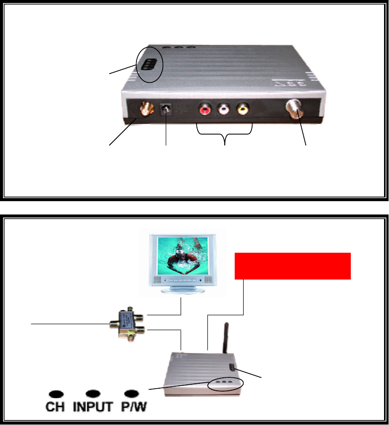 2.2 Transmits CATV signals via the Transmitter or signals from other video