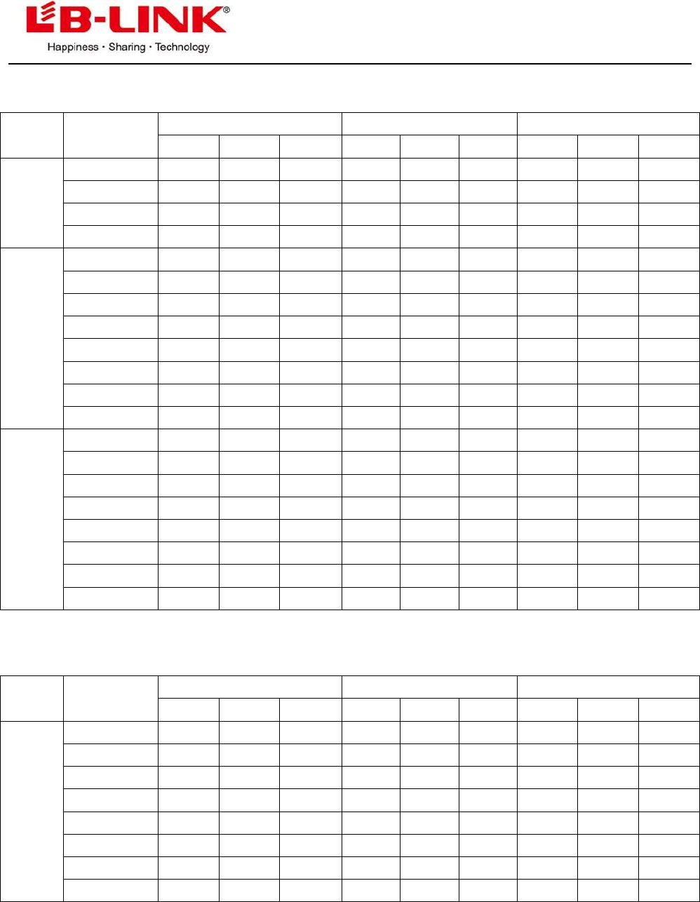 Mode Rate(Mbps) Power(dBm) EVM(dB) Sensitivity(dBm)