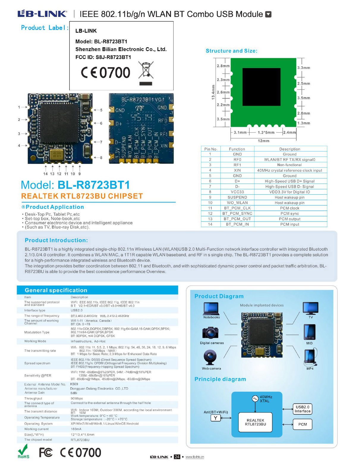 Shenzhen Bilian Electronic Co., Ltd. IEEE 802.11b/g/n WLAN BT Combo USB Module