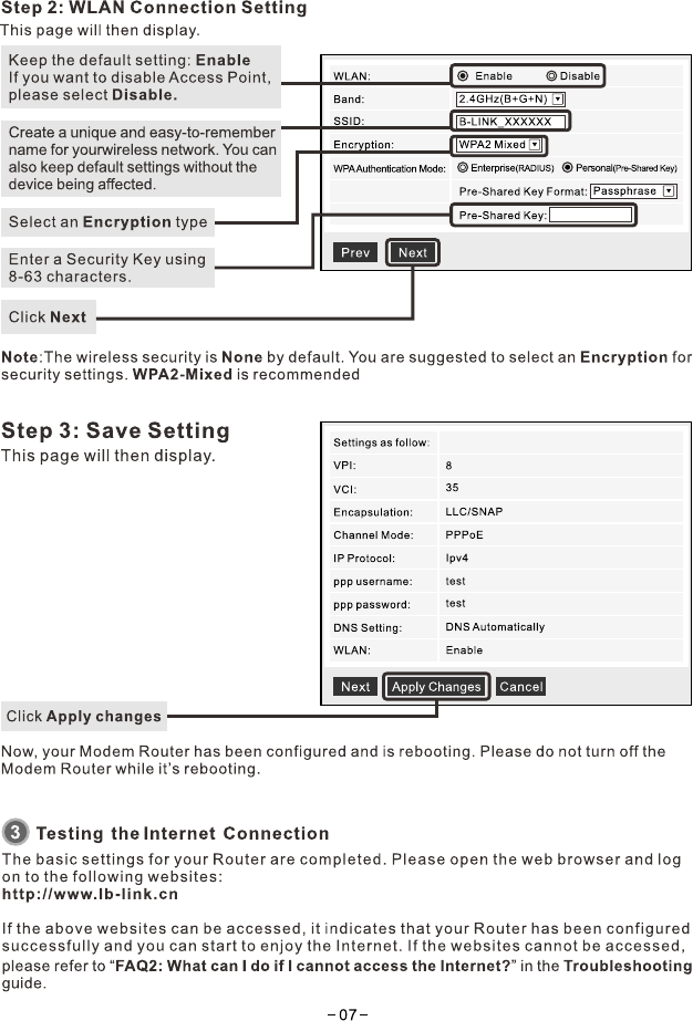 Shenzhen Bilian Electronic Co., Ltd. 300Mbps Wireless N ADSL2 Modem Router Manual
