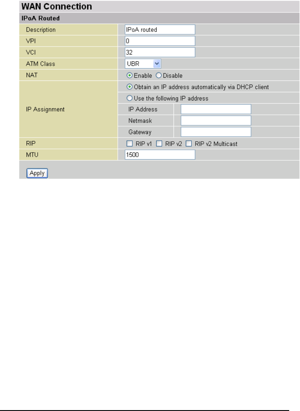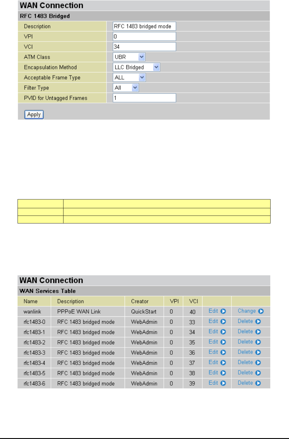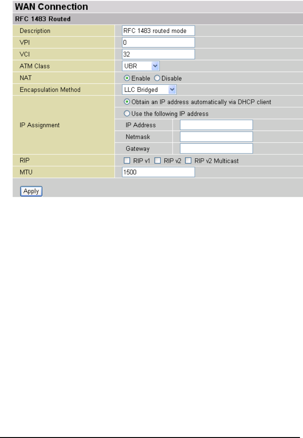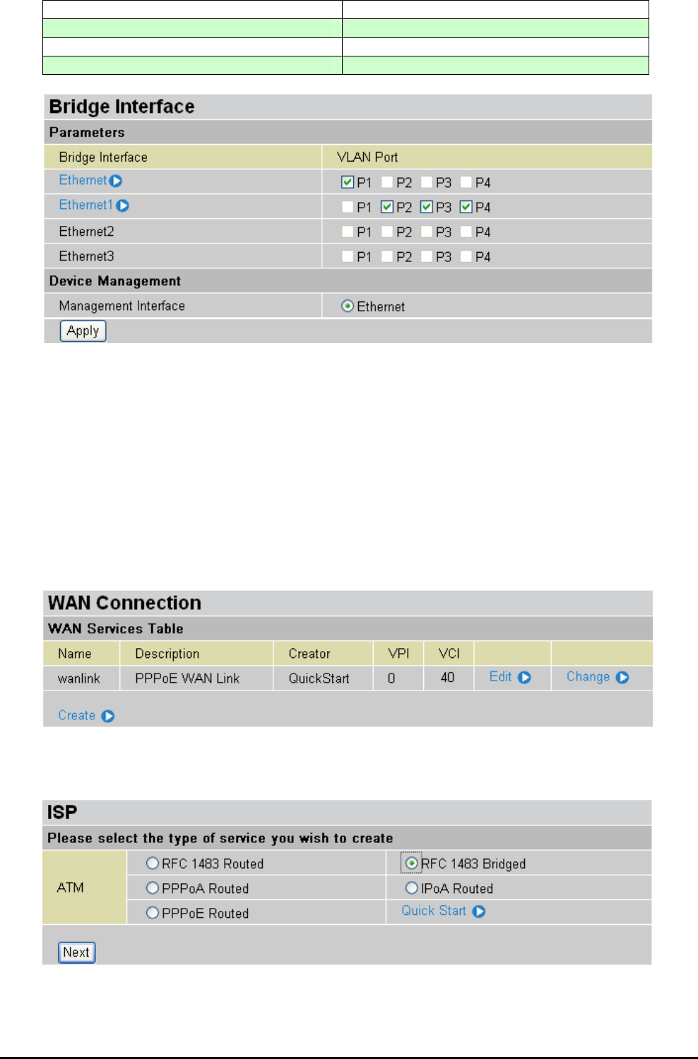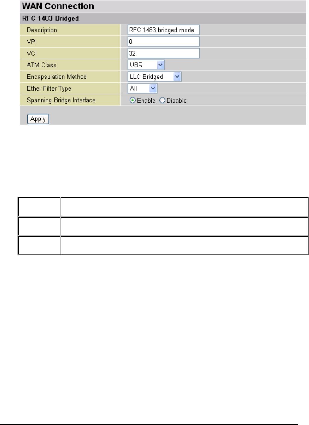 Repeat the same procedure by clicking Create select RFC1483 Bridged fill-in the rest of
