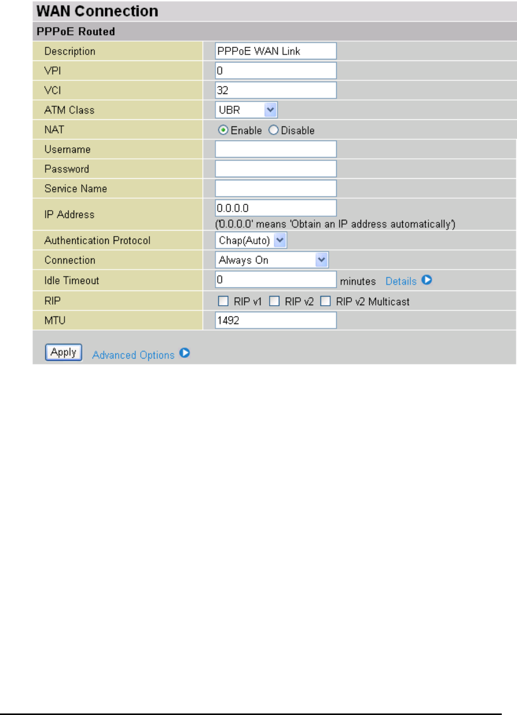 From the example, VPI and VCI only section need to be filled-in and just leave the rest as is.