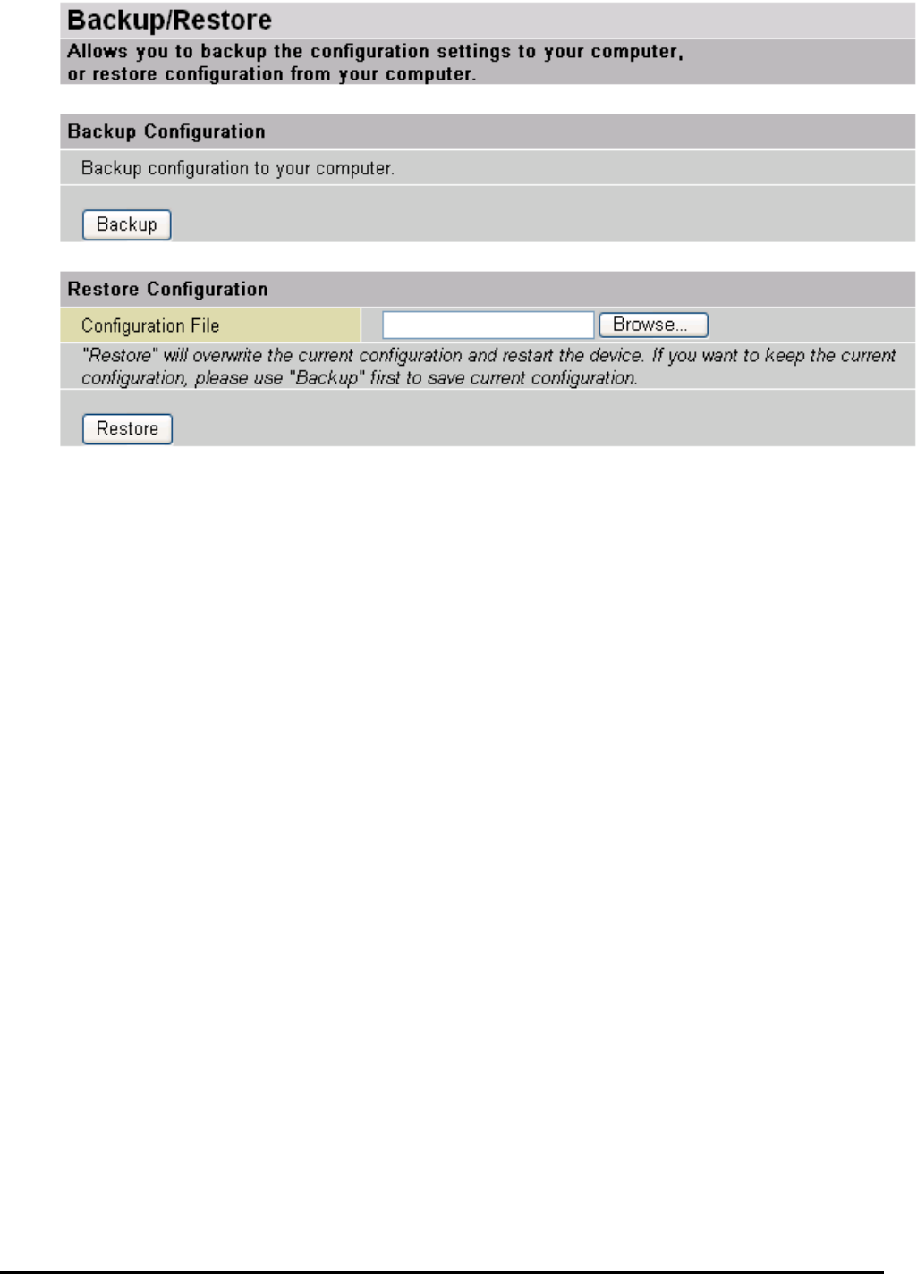 Be aware that the router is restricted to only one PC accessing the configuration web pages at a time.