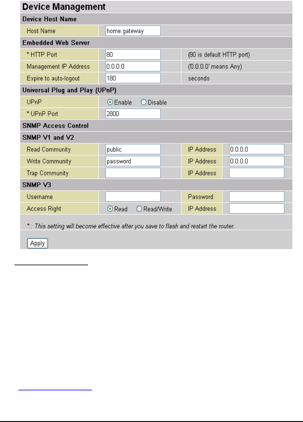 Device Management section of the web interface. Please see the Advanced section of this manual for