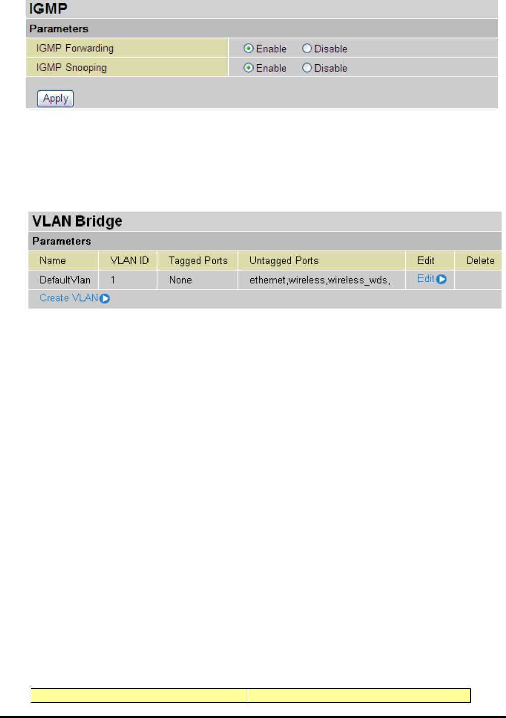 VLAN untagged ports for Data/Internet: ethernet, wireless and wireless_wds.