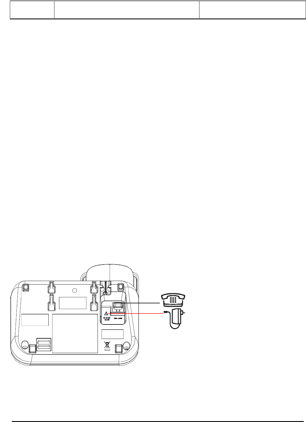 Telephone base voltage(Adapter output) 6VDC, 400 mA