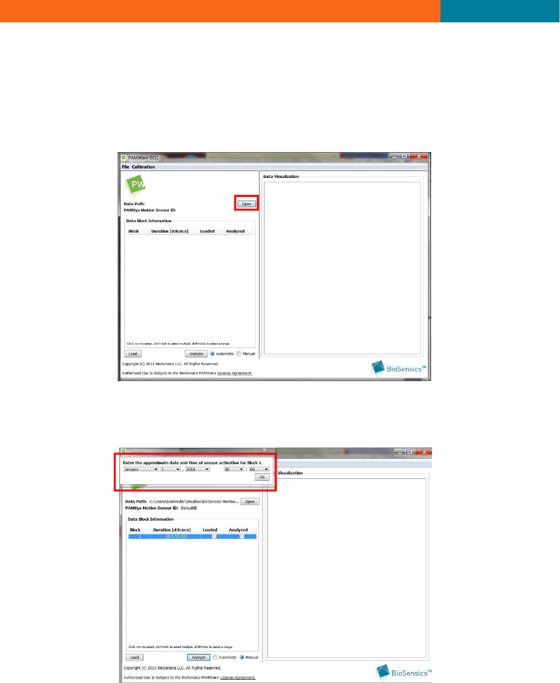 To analyze the data properly PAMWare must know the orientation of the sensor and a start time