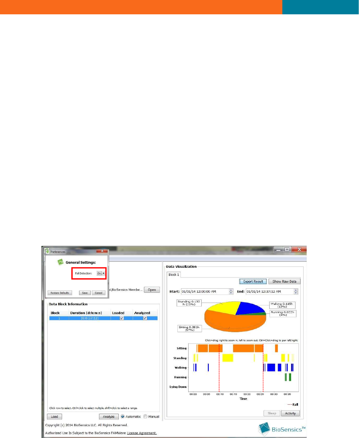 (sitting, standing, walking, running or lying). Fall incidents can also be visualized by going to File ->