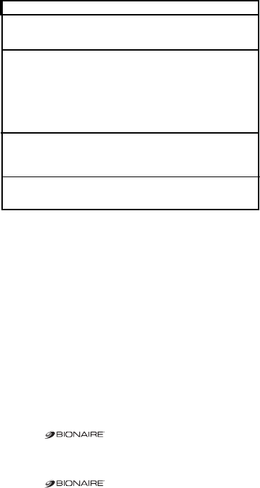 Bionaire®décline toute responsabilité en cas de dommages matériels