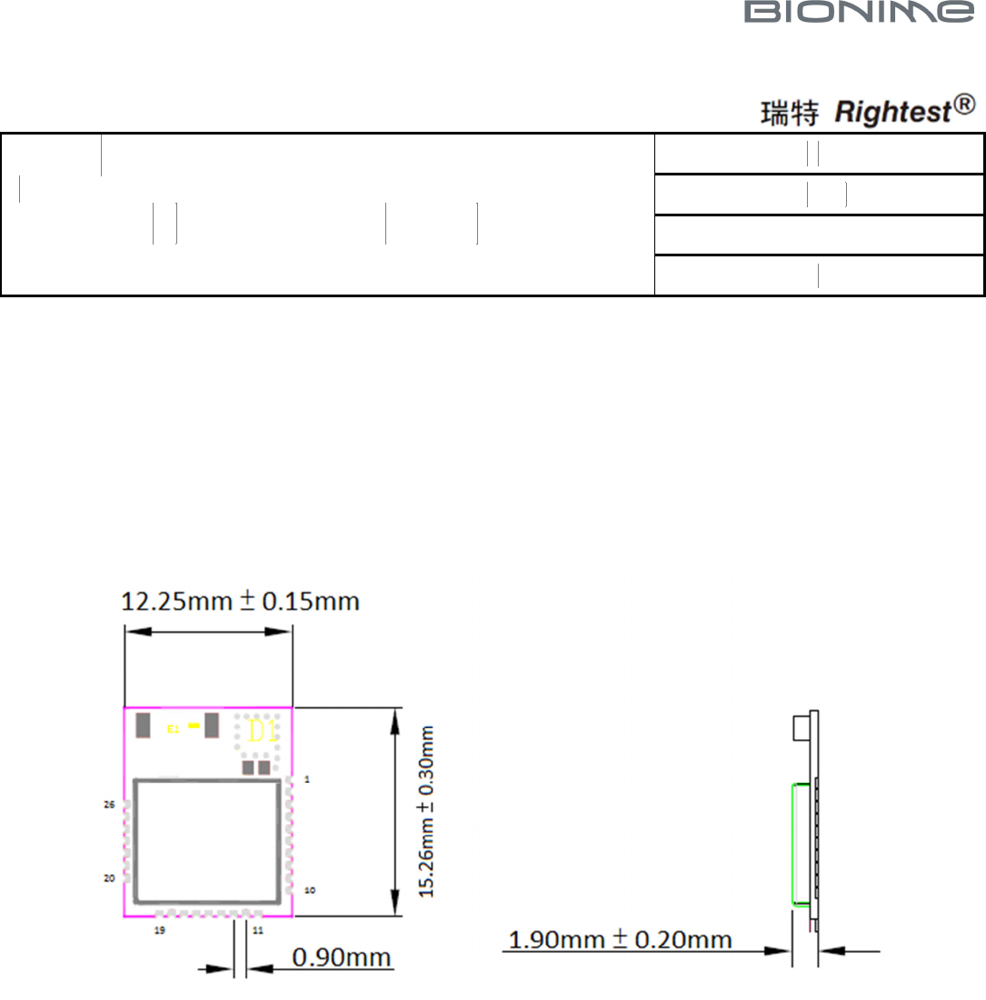 Outline Dimension 12.25 (W) * 15.26 (L) * 1.9 (H) mm