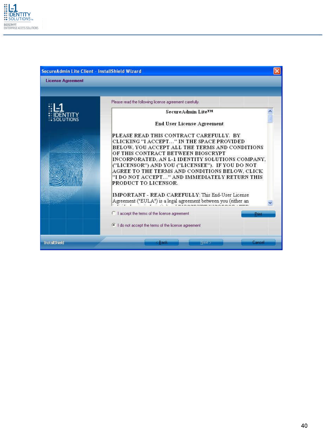 IMPORTANT—Please refer to the L-1 Identity Solutions End User License Agreement