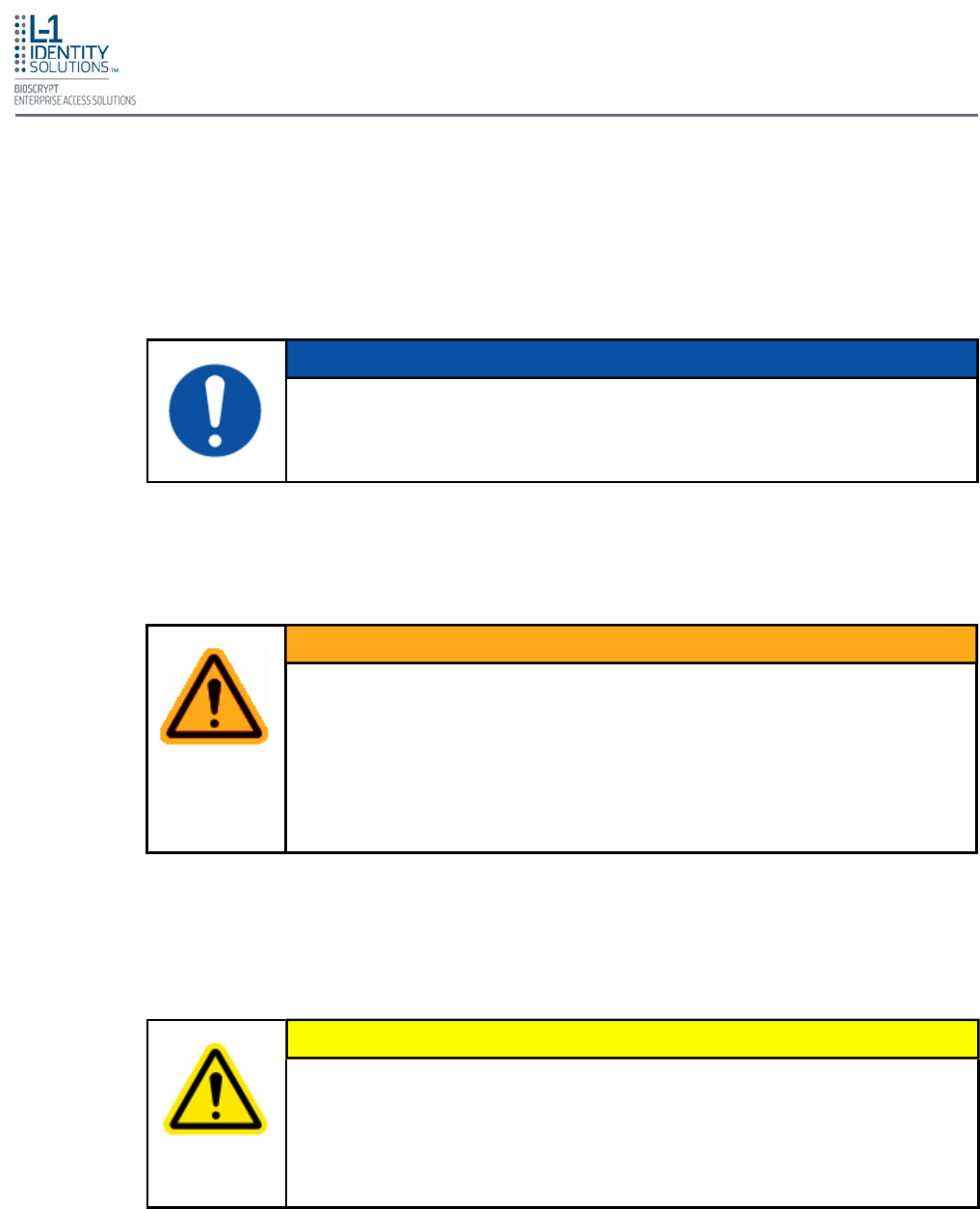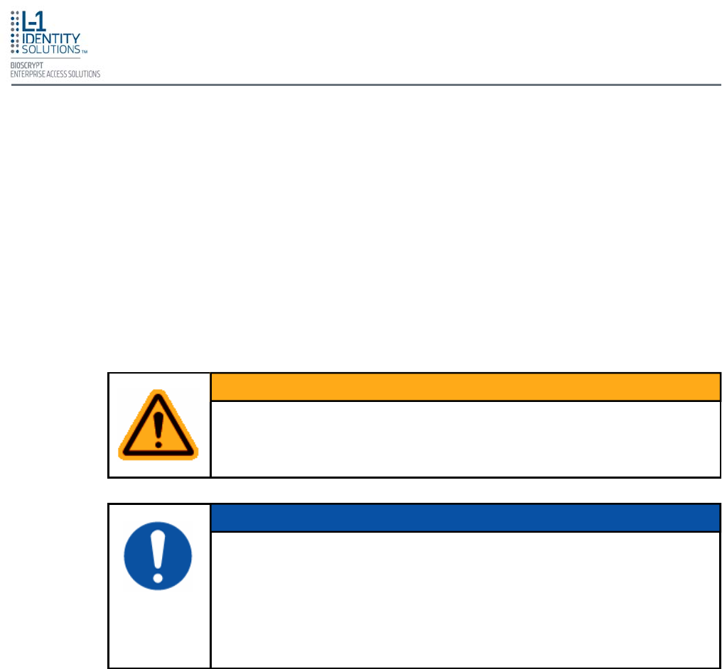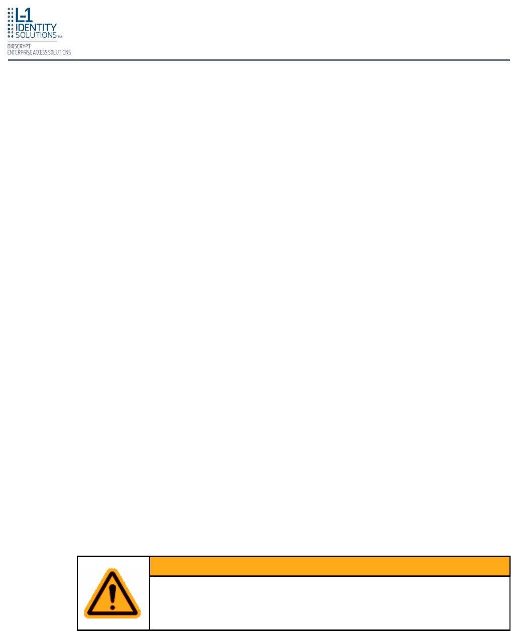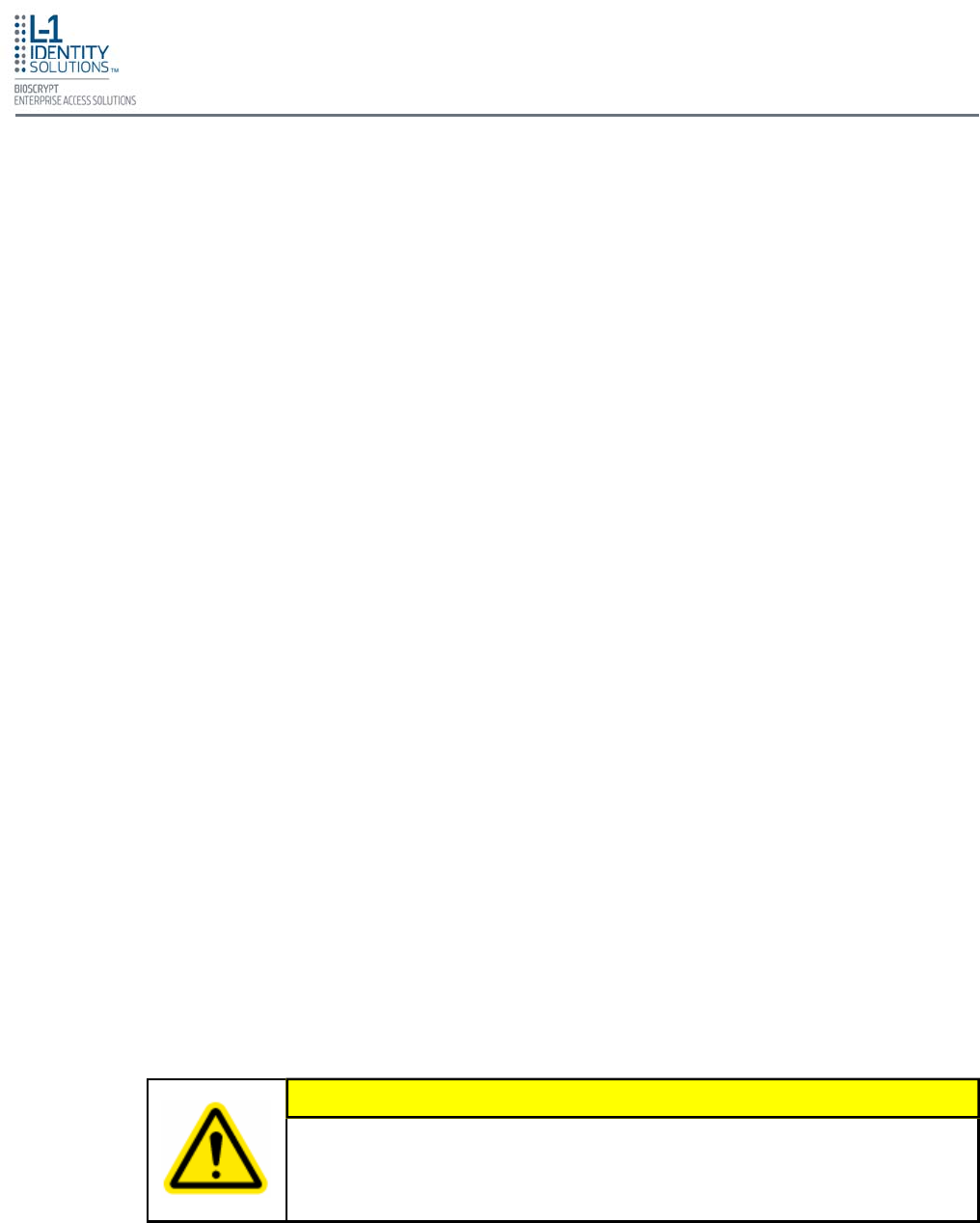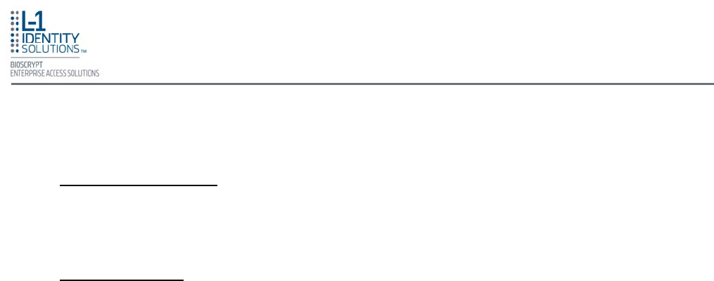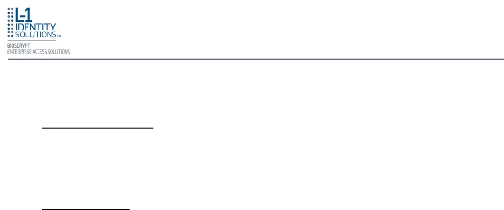 Caution: Changes or modifications not expressly approved by Bioscrypt Inc. could void the user’s